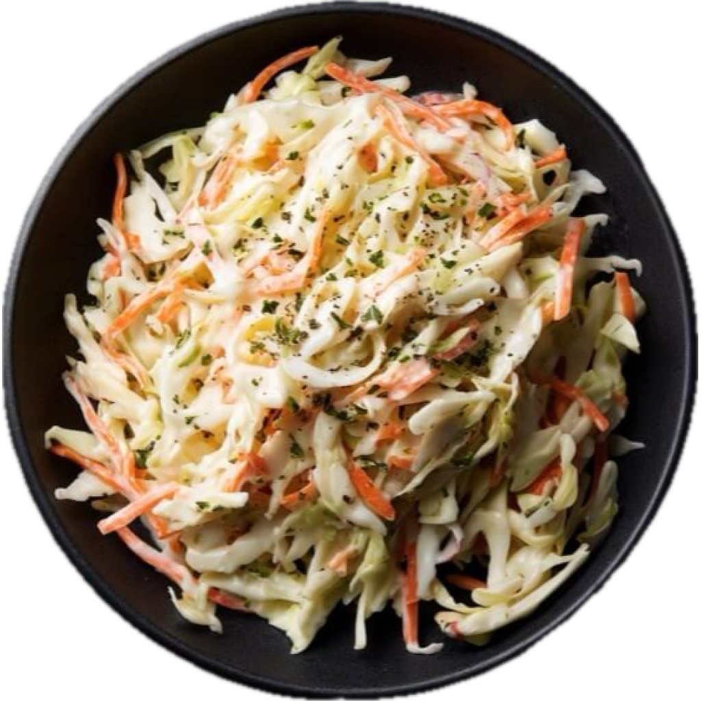 křupavý salát ze syrového zelí, mrkve a cibule spojený s majonézou. Skvěle se hodí k burgerům!